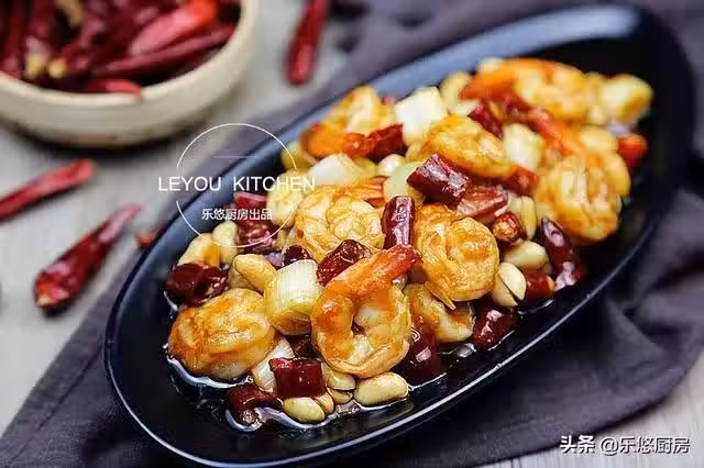 第一步:準備食材。鮮蝦300克、蔥2根、去皮花生米50克、干紅辣椒適量、姜蒜適量。