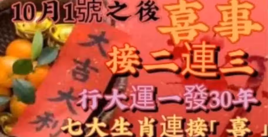10月1號後七生肖行大運一發30年,喜事接二連三連「接喜」