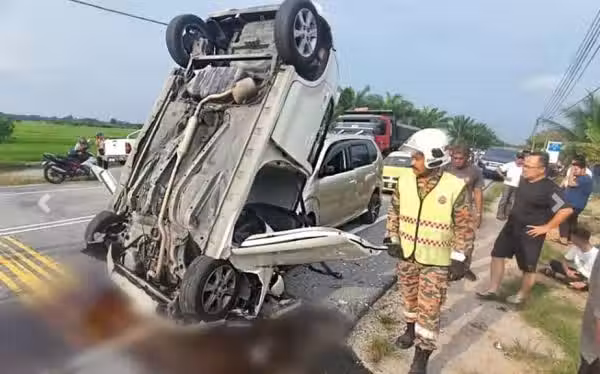 (安順1日訊)邁薇轎車疑駛入反方向車道,結果與一輛豐田Avanza休旅車相撞,造成1死2重傷悲劇!