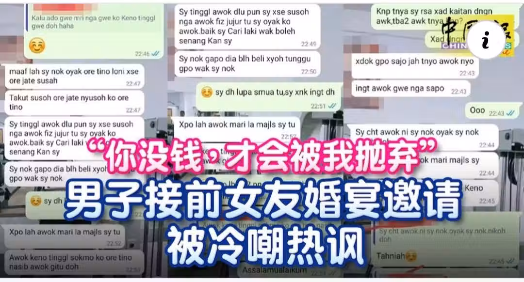 男子上傳與前女友的WhatsApp聊天截圖,只見字裡行間里受到前任的冷嘲熱諷。