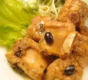 材料:肋排半斤、黃豆二兩、生薑少許、醬油、花生油、鹽