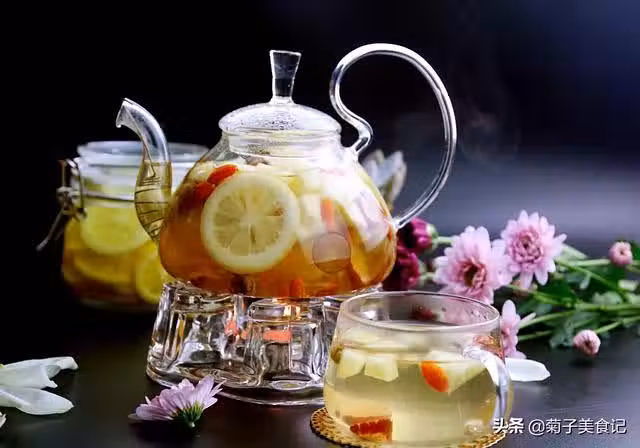 第二步:鍋里加入適量開水,先後放入蘋果丁,紅棗片燒開煮5分鐘,再放入枸杞,玫瑰花,冰糖,最後轉移到專用的茶具里再加入檸檬片即可,簡單的水果養身茶就做好啦!