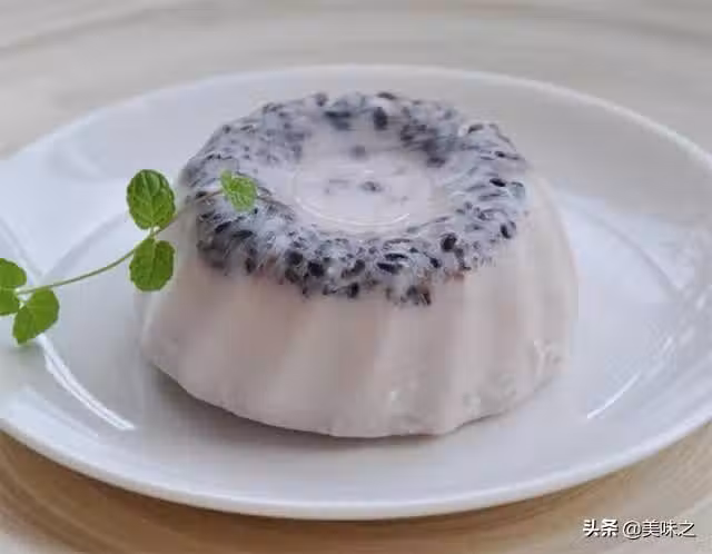 6、紫米鋪在模具的底部,倒入混合好的溶液,冷藏至凝固即可。