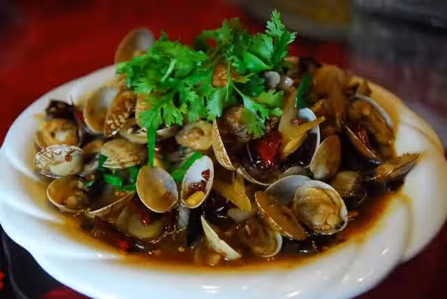 1.花蛤先放清水中,加一勺鹽讓花蛤吐沙。也可在買花蛤時讓商販給點海水,帶回養花蛤吐沙。
