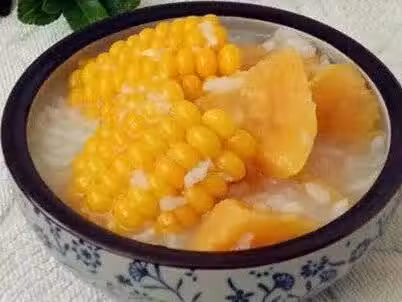 鍋中加水,放入玉米煮10分鐘後加入紅薯,5分鐘後加入糯米,大米,煮熟後關火即可