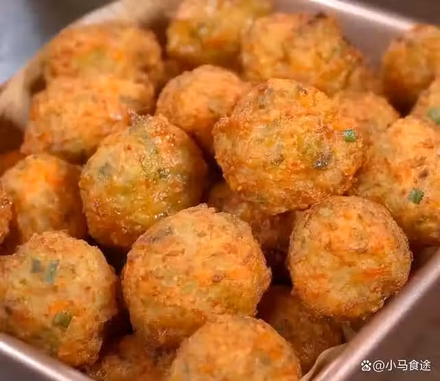 2.鍋燒油,油溫六成熱,下入丸子,炸至金黃酥脆,撈出即可裝盤食用。