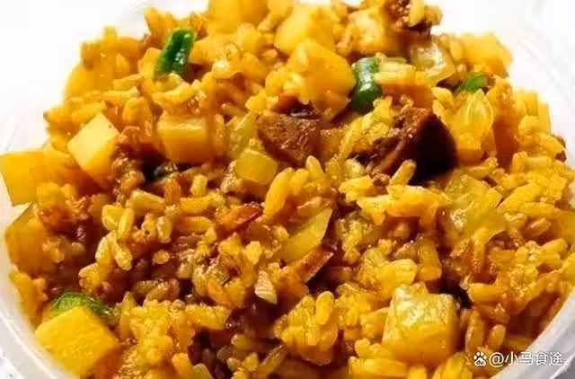 2.電飯煲里加入色拉油燒熱,爆香蒜瓣、洋蔥,倒入土豆,加入牛肉塊。加入適量咖喱粉,加入適量冷水,淘洗好的大米倒入電飯煲,調入適量鹽,攪勻,再將開關設置到煮飯檔,燜熟即可,需趁熱食用。