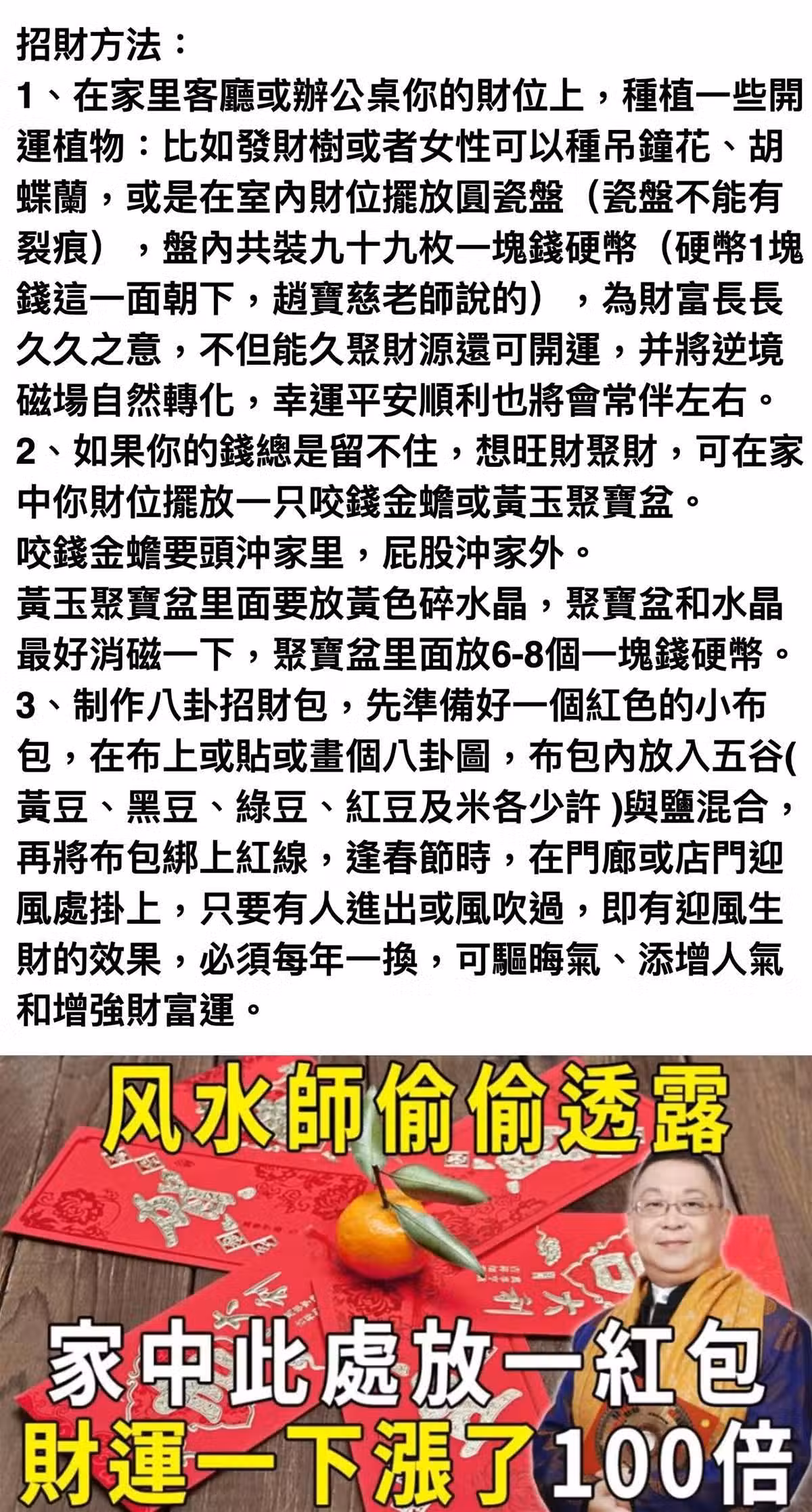李嘉誠御用風水師偷偷透露:在家中這個地方,放一個紅包,竟能讓財運100倍暴漲,好運一路旺到底!