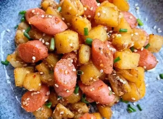 孜然土豆火腿腸,土豆也可以吃出燒烤的感覺,加入平時孩子們愛吃的火腿腸,專治孩子不愛吃飯,而且做法簡單,美味誘人。