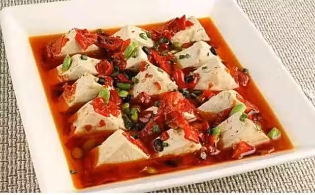 泡椒蒸豆腐,蒸豆腐的又一種好吃做法,此做法根據剁椒魚頭改進而來,豆腐選擇南方嫩豆腐,稍微改成自己喜歡的形狀,搭配剁椒等佐料上鍋蒸熟,最後關鍵一步澆油,這道下飯菜就完成了,幾分鐘輕鬆搞定,特別下飯。