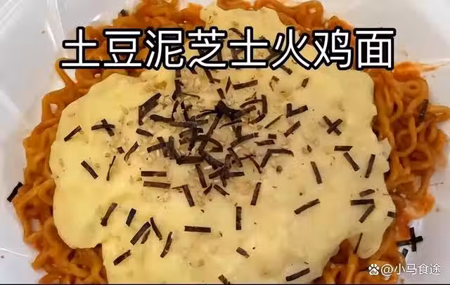 土豆泥芝士火雞面,火雞面新吃法,將熬好的芝士土豆泥蓋帽在拌好的火雞面上,碰撞出意想不到美味,喜歡吃火雞面的朋友一定得試試這種吃法,太好吃了。
