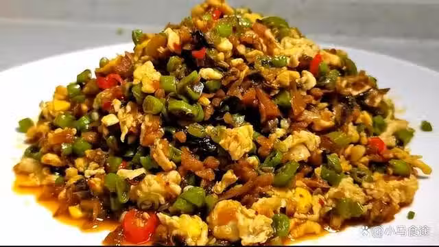 外婆菜炒豆角,這道菜的味道主要來源於外婆菜,外婆菜又起源於湘西,所以這道菜屬於湘菜,咸、甜、酸、辣各種滋味全在其中,用外婆菜來炒豆角,脆上加脆,超級好吃。
