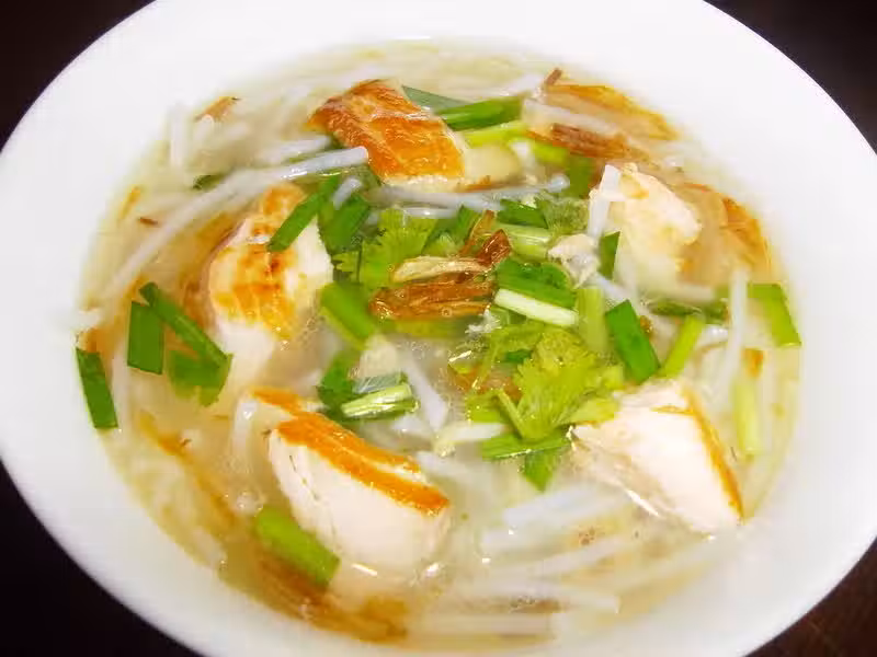 4)煎蛋清湯米粉