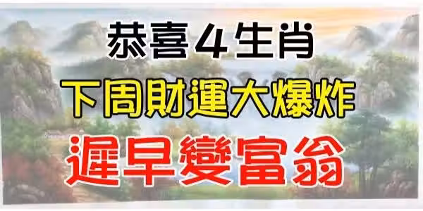 恭喜四大生肖,下周開始財運蒸蒸日上,遲早變富翁