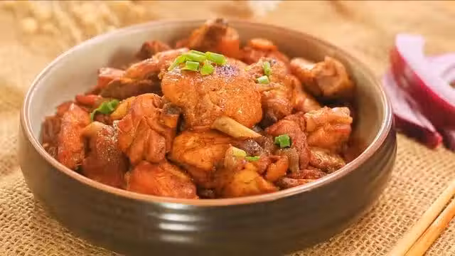 用料:雞半隻、洋蔥 1個、蔥 適量、生抽 1湯匙、老抽 1湯匙、料酒 1湯匙、糖 1/2茶匙、精鹽 2茶匙