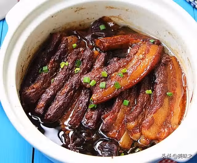 8、大約燉制1.5小時,揭下封著的毛巾,五花肉中的油脂全部燉出來了,肥肉軟糯不膩,瘦肉不柴。配上一大碗米飯,香哦!