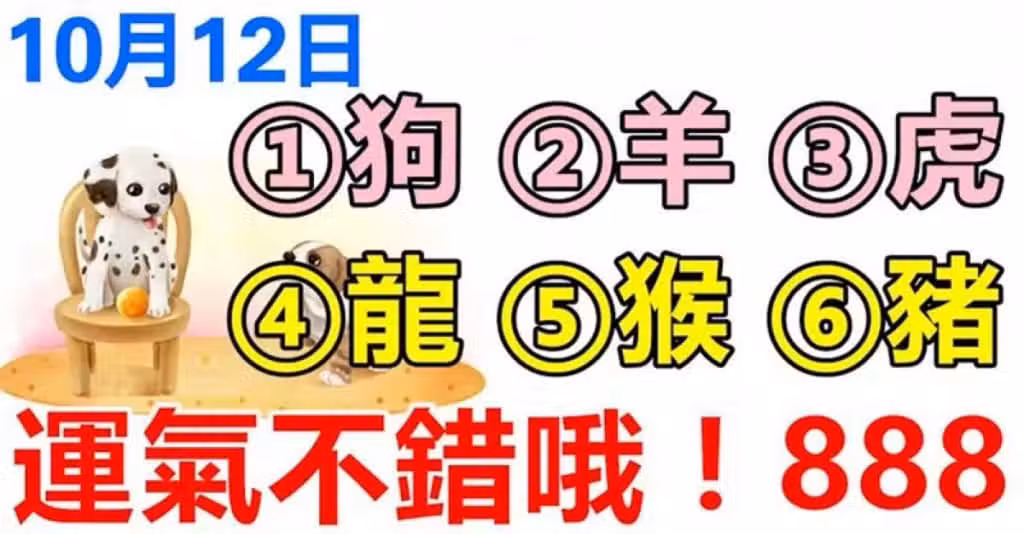 10月12日生肖運勢_狗、羊、虎大吉,運氣不錯!