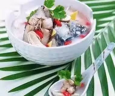 (3)三碗水煮滾,加入鯉魚、北耆片、陳皮及生薑,大火煮十分鐘,再轉文火煮三十分鐘後加入蔥、鹽燜三分鐘即可吃魚喝湯。