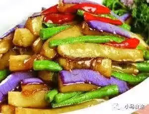 材料:茄子、青椒、火腿、竹筍、川椒、豬板油、澱粉、醬油、碘鹽、味精、蔥薑絲、蒜片、香油。