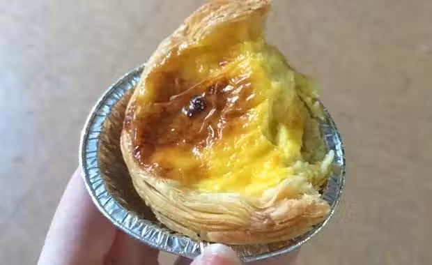 牛奶75ml;淡奶油150ml;細砂糖16g;蛋黃2個;蛋撻皮(現成買的)10個