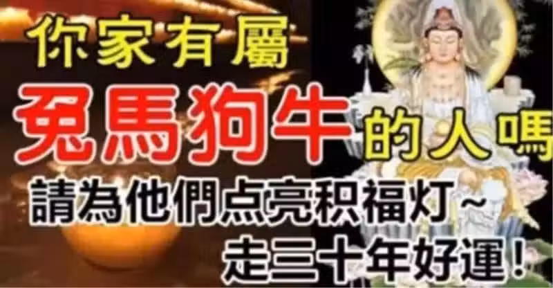 觀音菩薩賜福:家裡有生肖屬「兔馬狗牛」的人嗎?請為他們點亮祝福燈,走三十年好運!