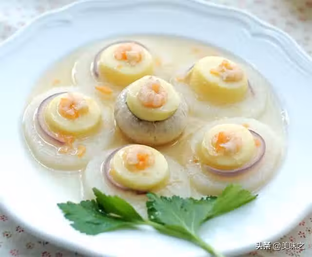 1、脆口山藥去皮切成5MM左右的薄片入水備用,洋蔥切片備用;白米蝦煮熟剝取蝦仁備用;