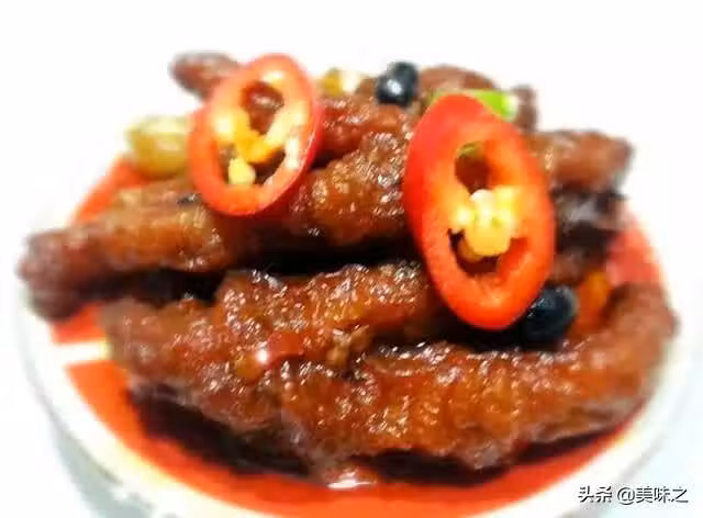 14、用青紅椒裝飾下,上桌了,老闆來兩份豉汁鳳爪。