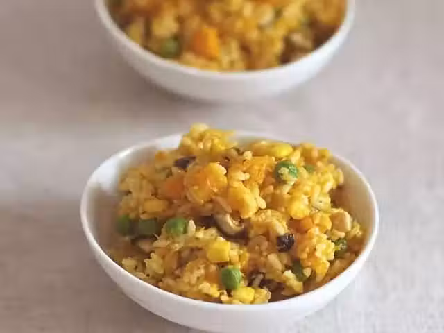米飯,南瓜,青豆,玉米粒,香菇,鹽,黑胡椒粉。