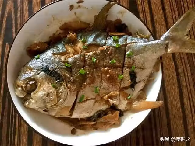 鯧魚1條、姜20g、蔥20g、蒜10g、精鹽1匙、胡椒粉2匙、料酒1勺、豆瓣醬1勺、醬油2勺、白糖1匙。