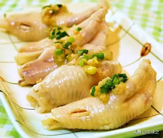 鳳爪約450克、精鹽2小匙、沙姜粉2小匙、精鹽2小匙、魚露2小匙、胡椒粉1/2小匙、冰糖5克、生薑5~8片、薑汁1/2大匙、蔥白末1棵量、蔥綠1棵量、干蔥頭末3顆量、沙姜粉1/2大匙、精鹽1小匙、白糖1/3小匙、花生油或菜油1/4杯。