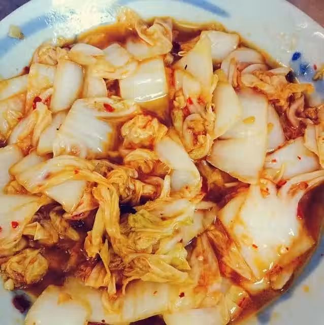 4、吃太多辣研究出清淡點的酸辣白菜,辣椒用那個新鮮的比較大的切片,有點肥肉熱油會更香,油熱下肥肉炒至有點焦下蒜頭辣椒片熱會後下白菜翻炒下,下點水燜會,不要太久,因為要脆脆的口感^_^然後下鹽再下少少醬油少少醋,也是很好吃,比較清淡點。