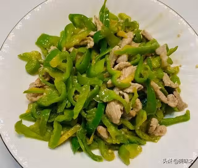 皺皮椒適量、瘦肉適量、薑絲適量、料酒適量、鹽適量、雞精適量。