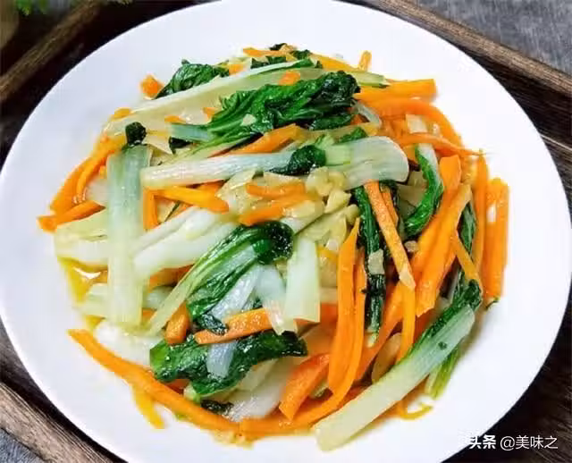 4、再放入胡蘿蔔絲翻炒,最後放入菜葉。