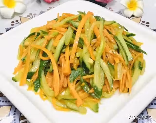 2、胡蘿蔔去皮切絲,青瓜洗乾淨直接切絲。