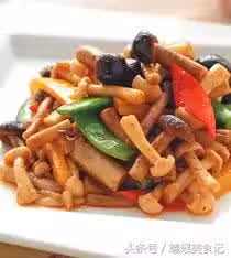 美白菇150公克,柳菘菇150公克,甜豆100公克,黃甜椒80公克,辣椒片15公克,薑片15公克,牛頭牌素沙茶醬2大匙,素蚝油1小匙,香菇粉少許,鹽1/4小匙,香油1小匙