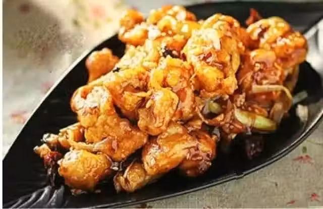 3、鹽5g、干辣椒5個、生抽10ml、大蒜3瓣、白醋15ml、白糖10g調成汁,鍋燒油,干辣椒煸炒香,倒入醬汁,小火煮到黏稠,倒雞塊,翻炒均勻。