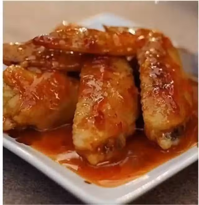 2、鍋中倒油,5-6成熱時放入雞翅,煎至兩面金黃,盛出放入碗中待用;