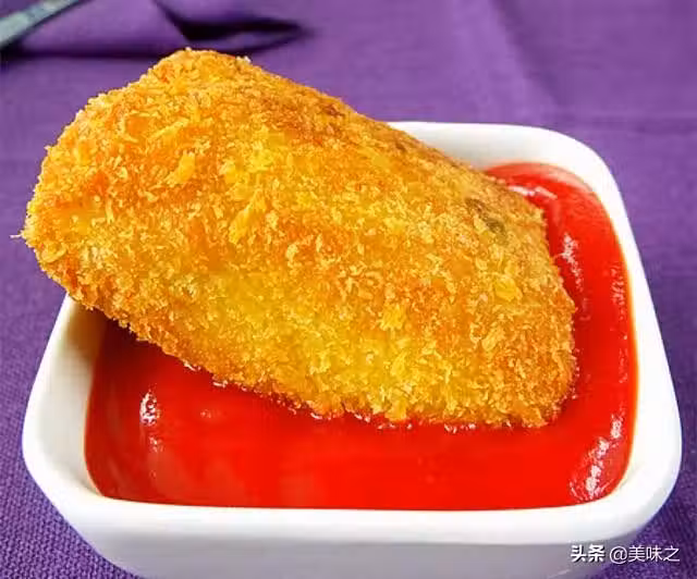 9、炸好的雞塊,趁熱沾番茄醬吃。