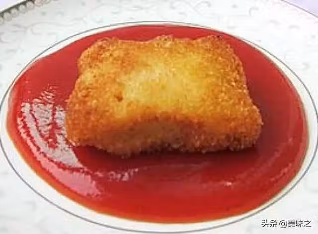 8、油鍋燒熱,下入雞塊,炸到金黃即可,另配番茄醬沾食。