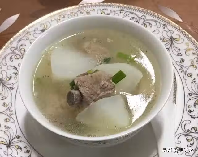 5、煲至蘿蔔變酥時,加入適量鹽,胡椒粉及蔥段,調入少許雞精即可。