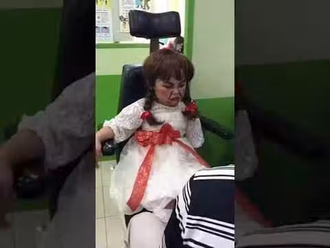 給我小心點!萌弟「萬聖節扮安娜貝爾」來不及卸妝 急忙赴診「近看眼神超哀怨」:敢打針就跟你拚