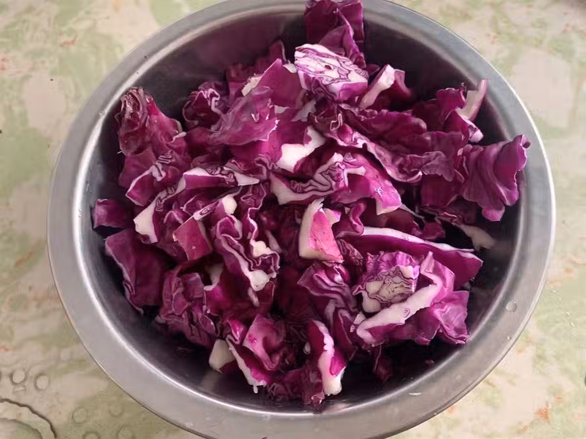 具體做法:1、首先將紫甘藍清洗乾淨。把它的葉片一片片剝下來,放進淡鹽水中浸泡十分鐘左右,這樣既可以殺菌,又能有效去除農藥殘留,之後再用清水沖洗乾淨即可。不管是什麼蔬菜一定要記得先洗再切,這樣蔬菜裡面的營養成分才不會流失。
