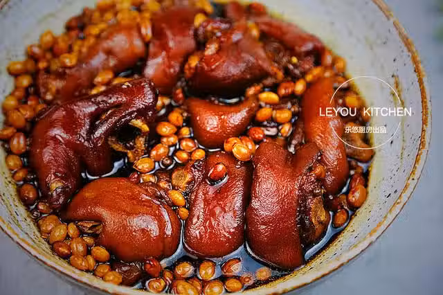 第二步:把豬蹄剁成塊,然後用清水浸泡2個小時。(豬蹄比較難剁,所以,最好提前讓賣肉的店家幫忙剁好。另外,用清水浸泡,可以很好的去除豬蹄中的雜質、異味,吃起來口感更好。)
