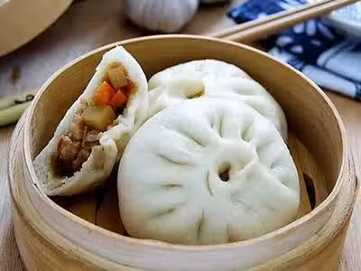 7、放入適量餡料,邊緣向中間收攏成包子。