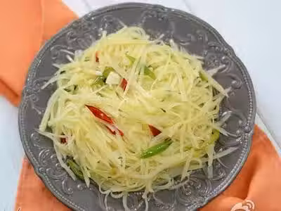 土豆、花椒、干辣椒、蒜、蔥、青椒、鹽、油、米醋、味精各適量。