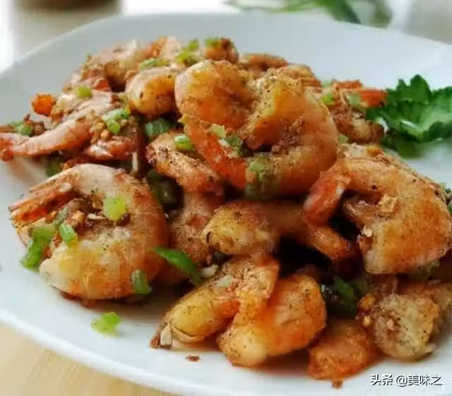 7、將蝦倒入鍋中加熱,撒入椒鹽攪勻。