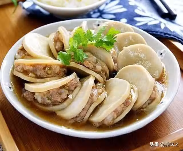 8、把做好的芡汁澆在蒸好的鮑菇夾上即可。