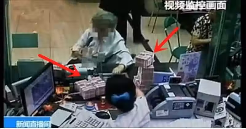 櫃檯小姐立刻恭敬地遞上三十萬給老奶奶。