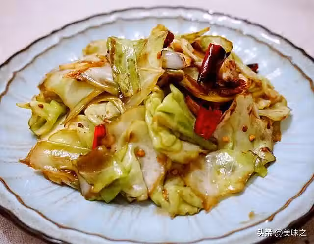 圓白菜半個、蒜瓣5瓣、干辣椒適量、豬油1小勺、花椒少許、鹽適量、糖適量、醋適量、生抽適量、蚝油適量。
