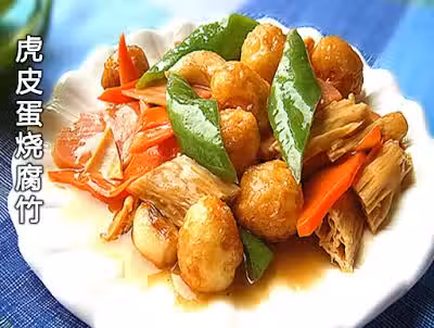 材料:鵪鶉蛋 10 個,腐竹 2 根,胡蘿蔔 半根,辣椒 1 個,三文治火腿 半個,蒜瓣 5 瓣